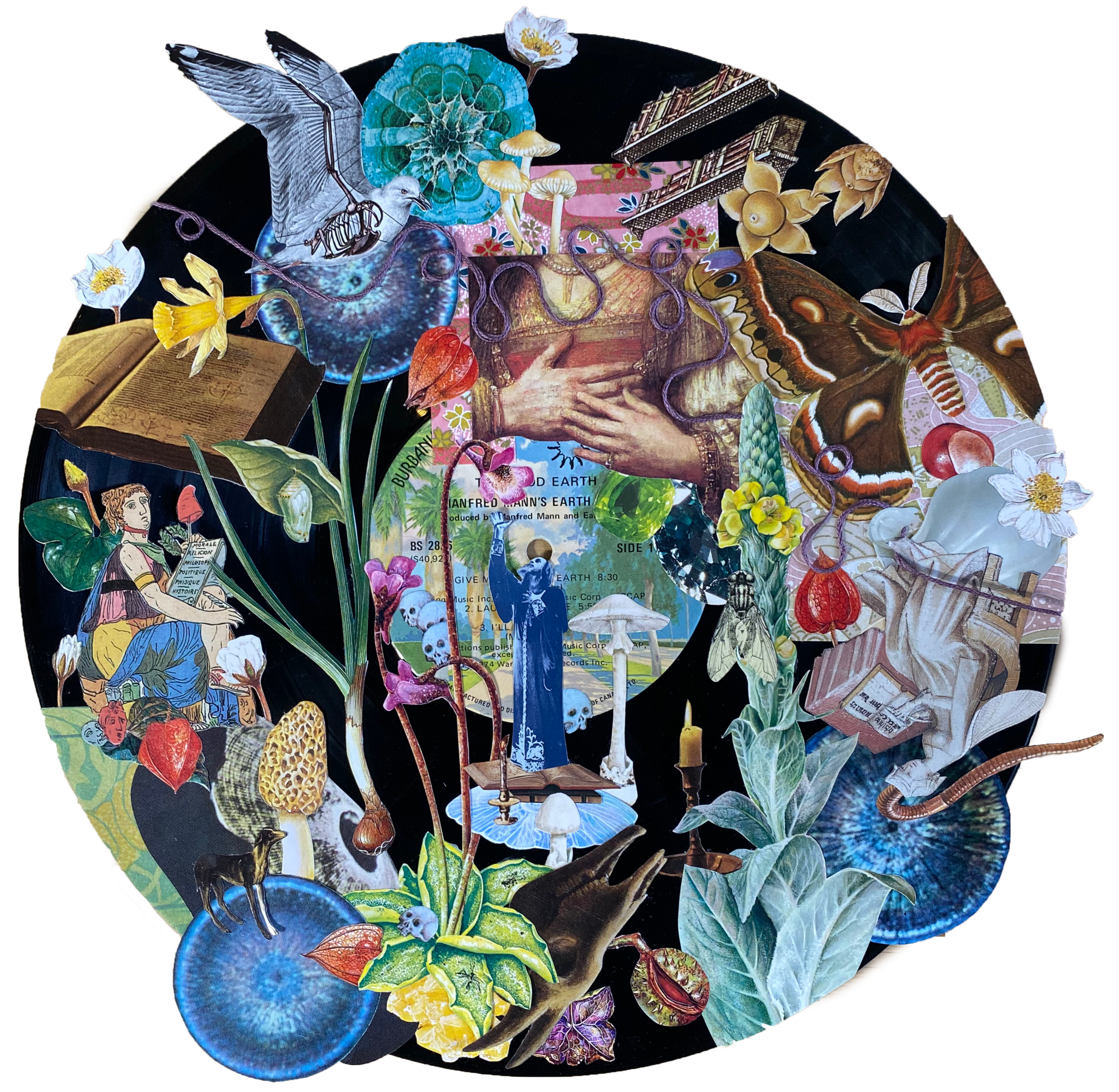 paper collage on vinyl disk, 2024